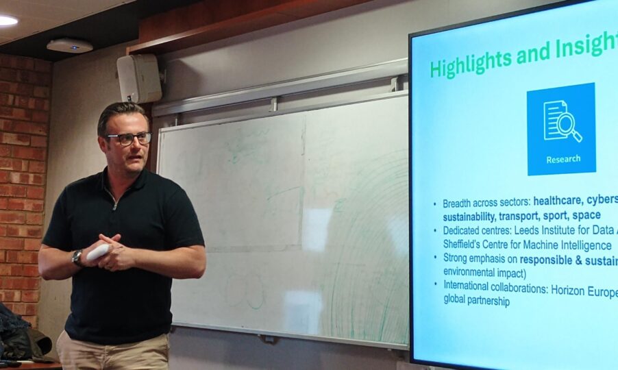 Research is taking place around use of AI, especially around healthcare, to feed into the NHS 10-year plan, cybersecurity, manufacturing, sustainability, transport, sport and space.